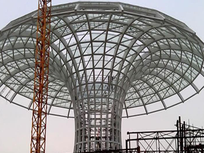 二、球形网架结构因其结构新颖,受力合理,自重轻、用钢量低等优点。如大型体育场馆球形温州螺栓球网架、公共场馆球形网架、电厂温州螺栓球网架、水泥工业球形网架、仓储物流球形网架、温州干煤棚工业球形网架、温州收费站温州加油站球形网架、展览中心、影剧院、商场、航站楼、候车厅、工厂温州车间、仓库、电视塔等球形螺栓球节点网架。国内球形网架结构主要分为:温州焊接球节点网架及螺栓球节点网架两种。螺栓球节点网架其构件工厂内加工量较大,现场安装便捷,适用于现场工期紧,温州施工条件、用电量受制约,网架形状复杂、温州杆件定位困难的异形结构。螺栓球节点球形网架系统基本由温州杆件、螺栓球、支撑支座等组成。按照节点形式可分为交叉温州桁架体系、四角锥体系、三角锥体系等。支撑方式多为固定支座支撑。对于大面积、大跨度及有特殊受力或伸缩要求的网架结构可采用橡胶支座、滑移支座、球铰支座等支撑形式,以满足结构自身的受力稳定、均衡,便于内力释放等设计要求。